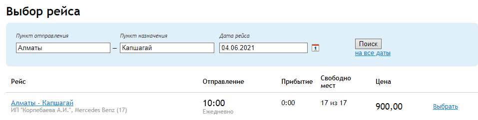 Несмотря на переименование, на сайте международного вокзала "Сайран" пункт назначения всё ещё называется "Капшагай". Автобусы в этом направлении от него отходят довольно часто, но лучше звонить и уточнять. В этом году билет в одну сторону стоит 900 тенге, если верить сайту вокзала.