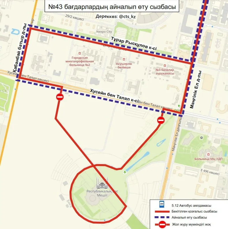 В ТОО «City Transportation Systems» рассказали, что теперь автобус не будет подъезжать к Центральной мечети в течение месяца Рамазан: