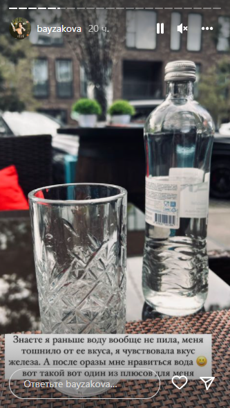 Примечательно, что сегодня же она призналась, что до Оразы почти не пила воду, потому что её тошнило от вкуса: