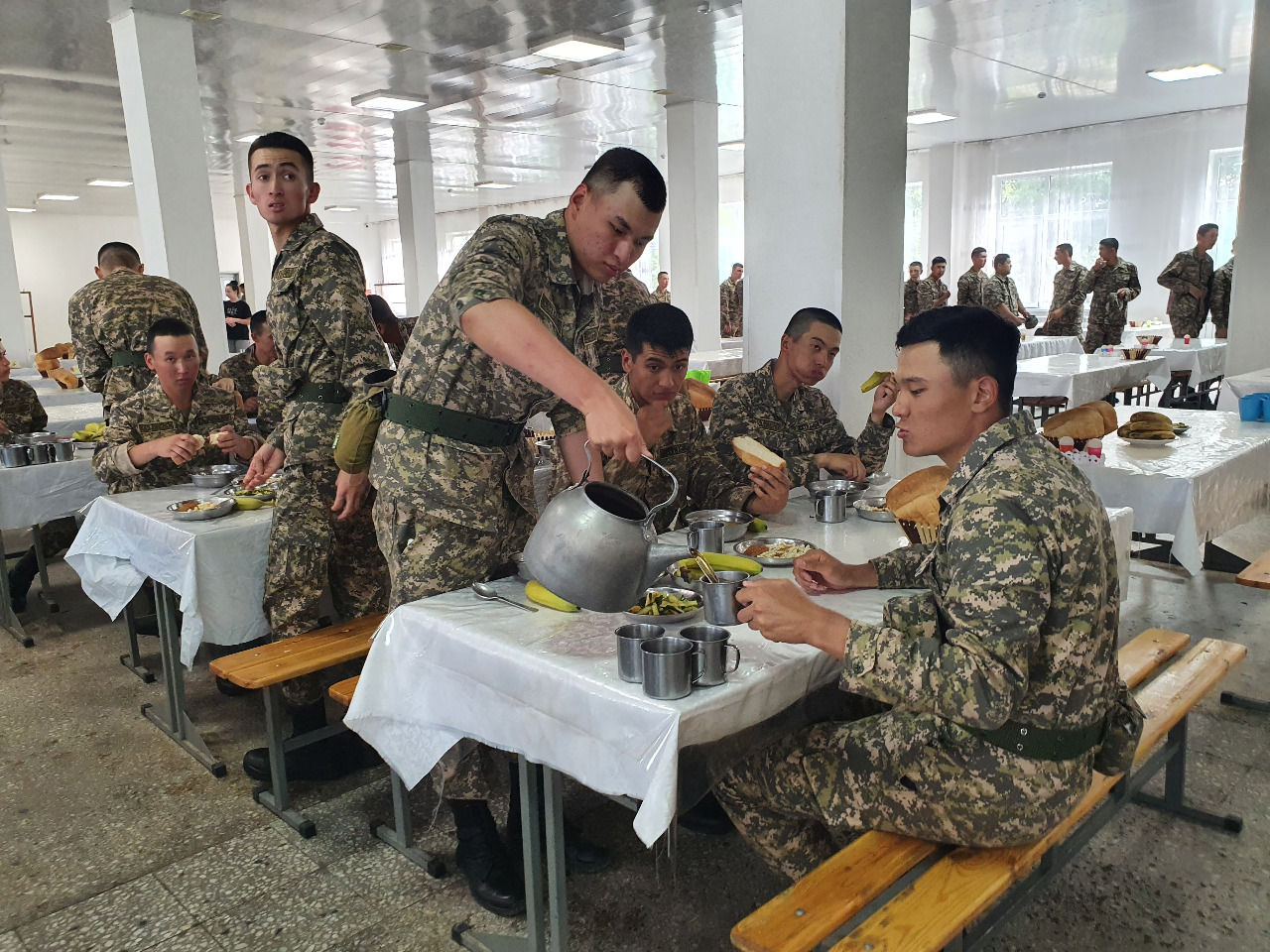 Учебный центр Военного института сухопутных войск – как разворошенный улей. “КАРАВАН” убедился, что боевая работа здесь кипит и днем и ночью. К плановым занятиям курсантов старших курсов прибавились сборы со студентами гражданских алматинских вузов. Будущим лейтенантам здесь в диковинку всё: и стрельба из автомата Калашникова, и бросок настоящей (!) боевой гранаты из окопа, и даже обед в солдатской столовой.