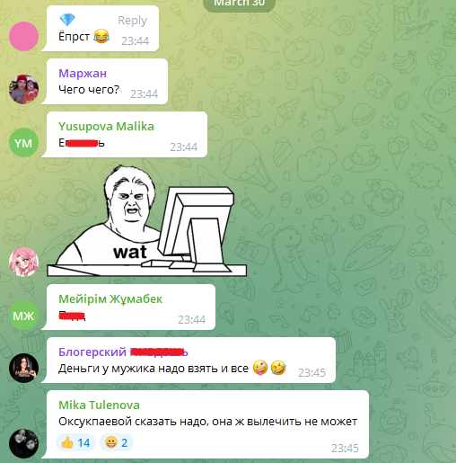 В группе обсуждают видео, на котором Асель Аскар говорит: "Перезаймёт у вас и вам же даст деньги — такое не пойдёт. Он даст вам сам, и когда вы эти деньги возьмёте, цистит останавливается моментально".