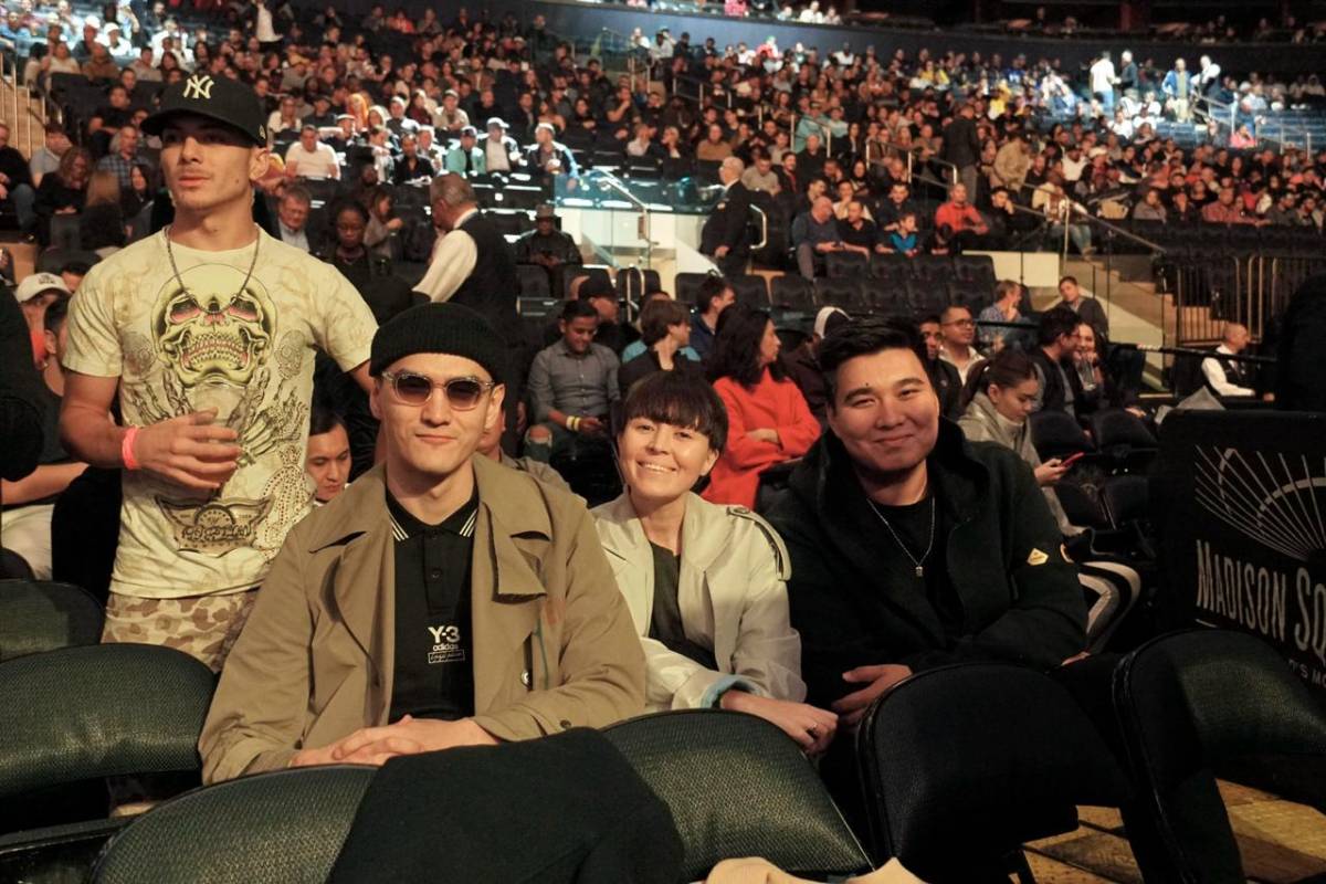 Чтобы поддержать Головкина, на трибунах стадиона собралось множество известных личностей. В их числе был Нурлан Сабуров в компании супруги и казахстанского режиссера Айсултана Сеитова.