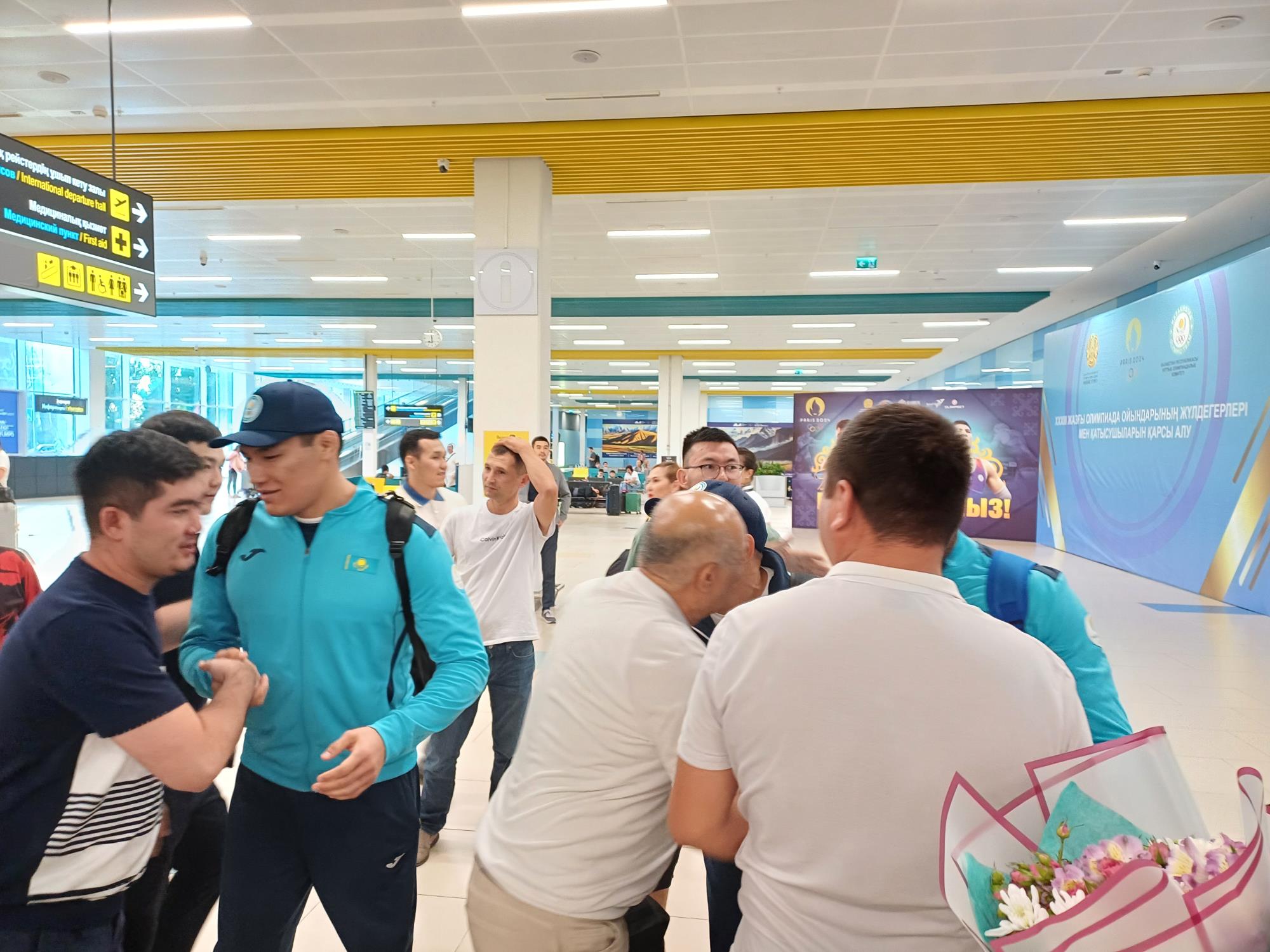 Отдельный теплый прием устроили борцам вольного стиля, вернувшимся в Алматы другим рейсом.
