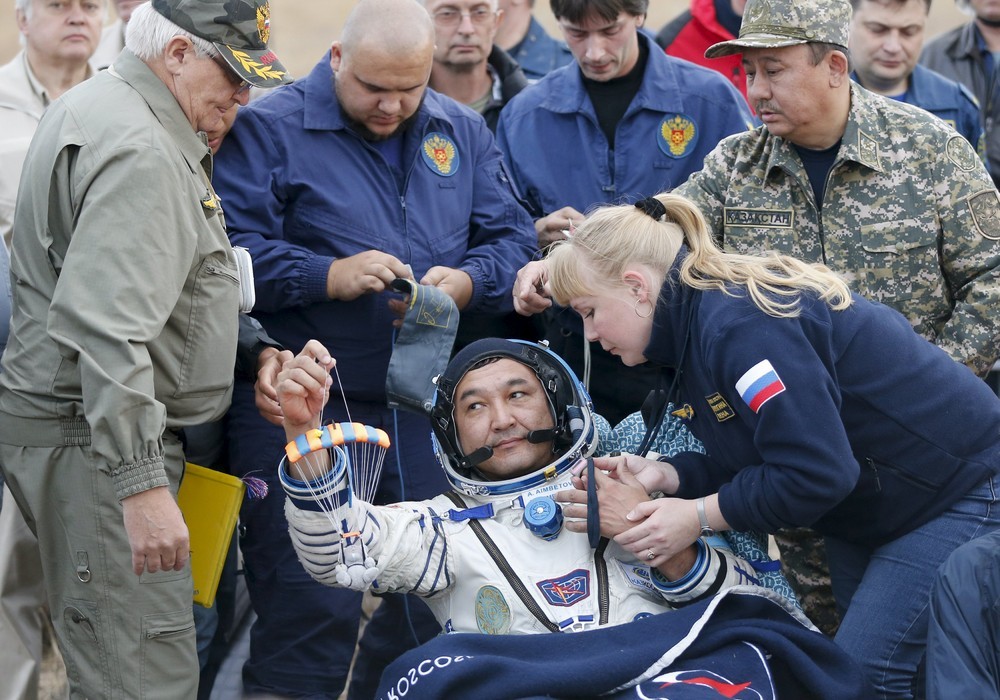 12 сентября в карагандинских степях совершил посадку “СоюзТМА-16М” с казахстанским космонавтом Айдыном Аимбетовым на борту. Он стал 3-м казахом, побывавшем в космосе. Но первым – с паспортом гражданина РК. За несколько лет до экспедиции Айдыну предлагали поменять казахстанский паспорт на российский, потому что всю подготовку к полету он проходил в России. Но Аимбетов отказался. И на орбиту взял флаг Родины.