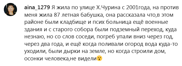 "В этом районе было кладбище — очень старое, середины 19-го века где-то. Вторая версия — что это следы каннибализма в голодные 20 — 30-е прошлого столетия", — сказал он.