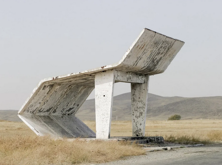 Фотограф Кристофер Хервиг проехал около 18 тысяч миль по 14 постсоветским странам, где снимал старые автобусные остановки. На создание книги ушло 12 лет, и этот снимок оказался на обложке издания. Эта остановка находится в Таразе.