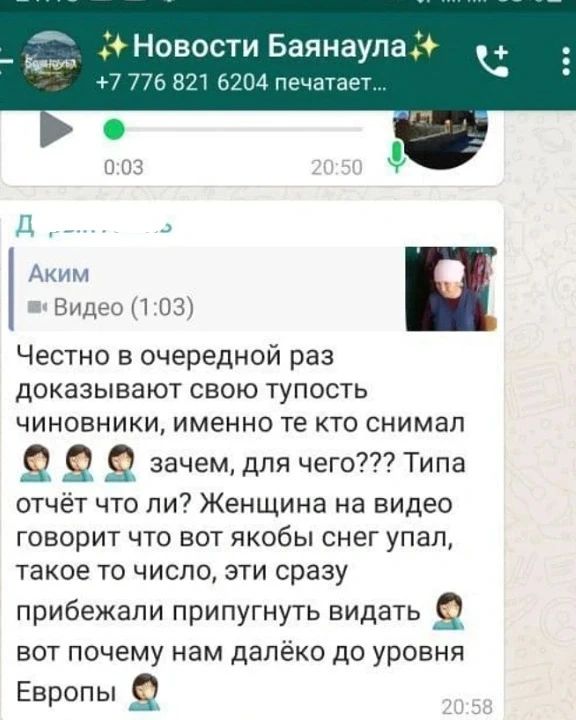 На скриншотах видно, что ролик в общий чат прислал человек. подписанный как "Аким", передает Caravan.kz со ссылкой на паблик "Типичный Павлодар".