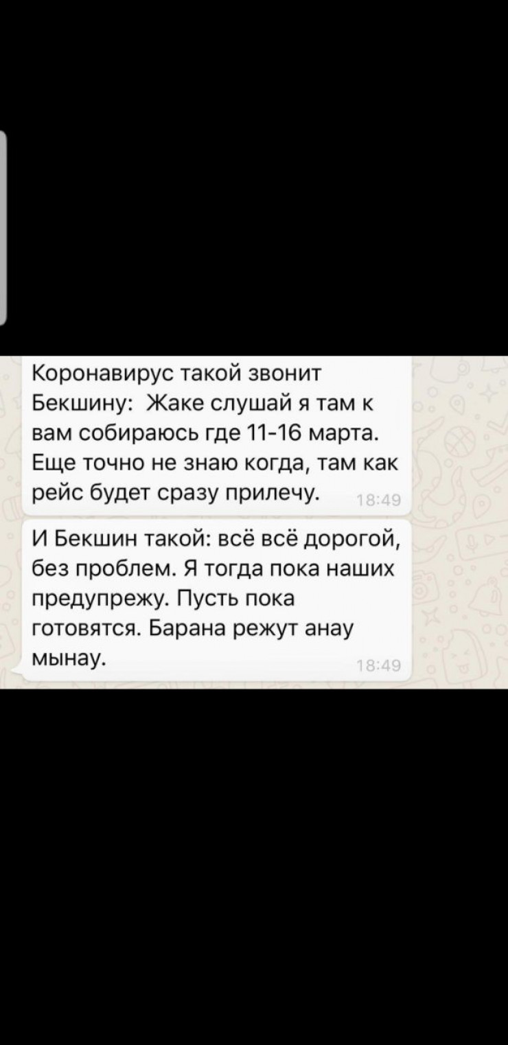 — По нашему прогнозу, где-то с 11-16-го у нас должен быть, все же наконец-то появится коронавирус в стране. Но это прогноз. Плюс-минус одна неделя… Как только у нас появится коронавирус, мы сразу введем специальные мероприятия, — сказал тогда Жандарбек Бекшин.