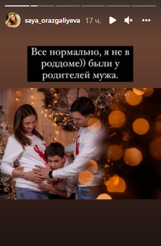 "Всё нормально, я не в роддоме. Были у родителей мужа", — написала актриса, выложив фотографию с мужем и сыном, которые трогают её живот.