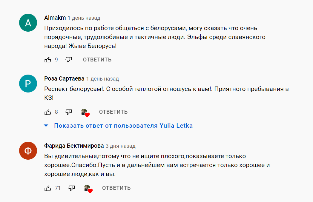 Из ближайших стран она выбрала Казахстан, а в самом видео перечислила ряд причин, почему она приехала именно сюда: большая часть разговаривает на русском, похожий менталитет, рядом с Россией, рубли можно с легкостью обменять на тенге.