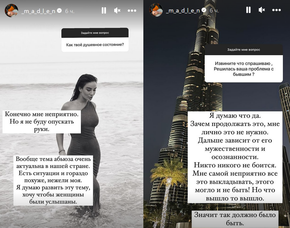 Известная инстадива Мадлен Мамадалиева недавно рассказала, что ее преследует бывший парень, передает медиа-портал Сaravan.kz. В связи с этим Айжан спросили, что она думает об этой ситуации, и та ответила, заодно поделившись своем мнением об абьюзе по отношению к женщинам в целом.