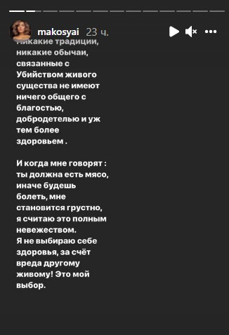 Макпал Исабекова в сториз в Instagram прокомментировала позицию людей, которые оправдывают поедание мяса, передает медиа-портал Сaravan.kz.