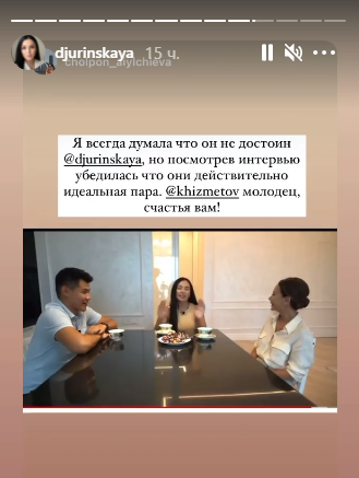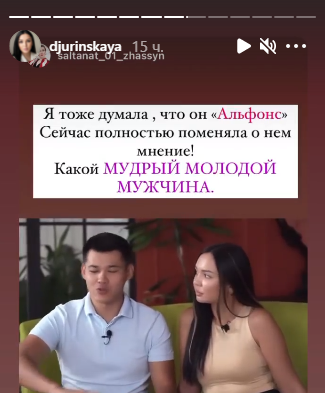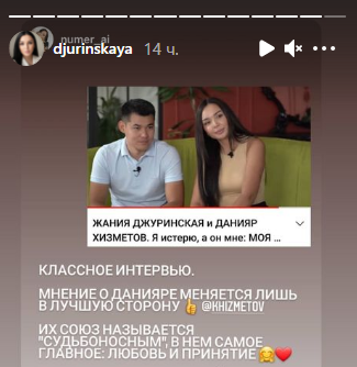 Супруги Жания Джуринская и Данияр Хизметов дали совместное интервью телеведущей Динаре Сатжан, и после этого многие подписчики признались, что их мнение о муже актрисы поменялось. Кто-то раньше считал, что Данияр — альфонс, другие — что он не достоин Жании, однако теперь в его адрес звучат преимущественно тёплые слова: