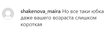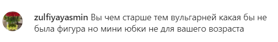 "Красиво, стильно, как и должна выглядеть любая, уважающая себя женщина", "Вы чем старше, тем вульгарней, какая бы ни была фигура, но мини-юбки не для вашего возраста", "Если есть, что показать, почему нет?", "Но все -таки юбка даже для вашего возраста слишком короткая", — пишут подписчики в комментариях.