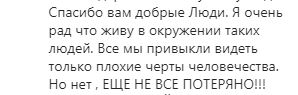 «Зашел в магазин, чтобы что-нибудь купить в знак благодарности, а все уже разбежались. Словно ничего и не было. Я даже не успел отблагодарить. Поэтому пишу сюда. Спасибо вам, добрые люди. Я очень рад, что живу в окружении таких людей. Все мы привыкли видеть только плохие черты человечества. Но нет, еще не все потеряно», — завершил пост участник паблика.