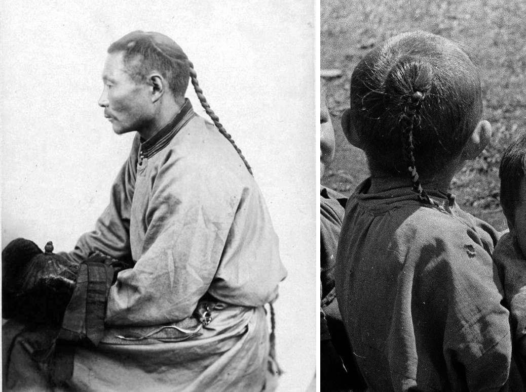 Похожие прически есть у многих тюркских народов. Например, такие косы носили представители монгольской знати. Можно их увидеть и на многих старинных фото.
