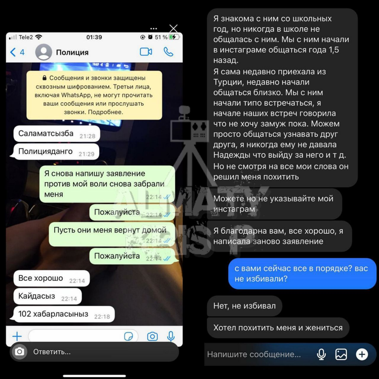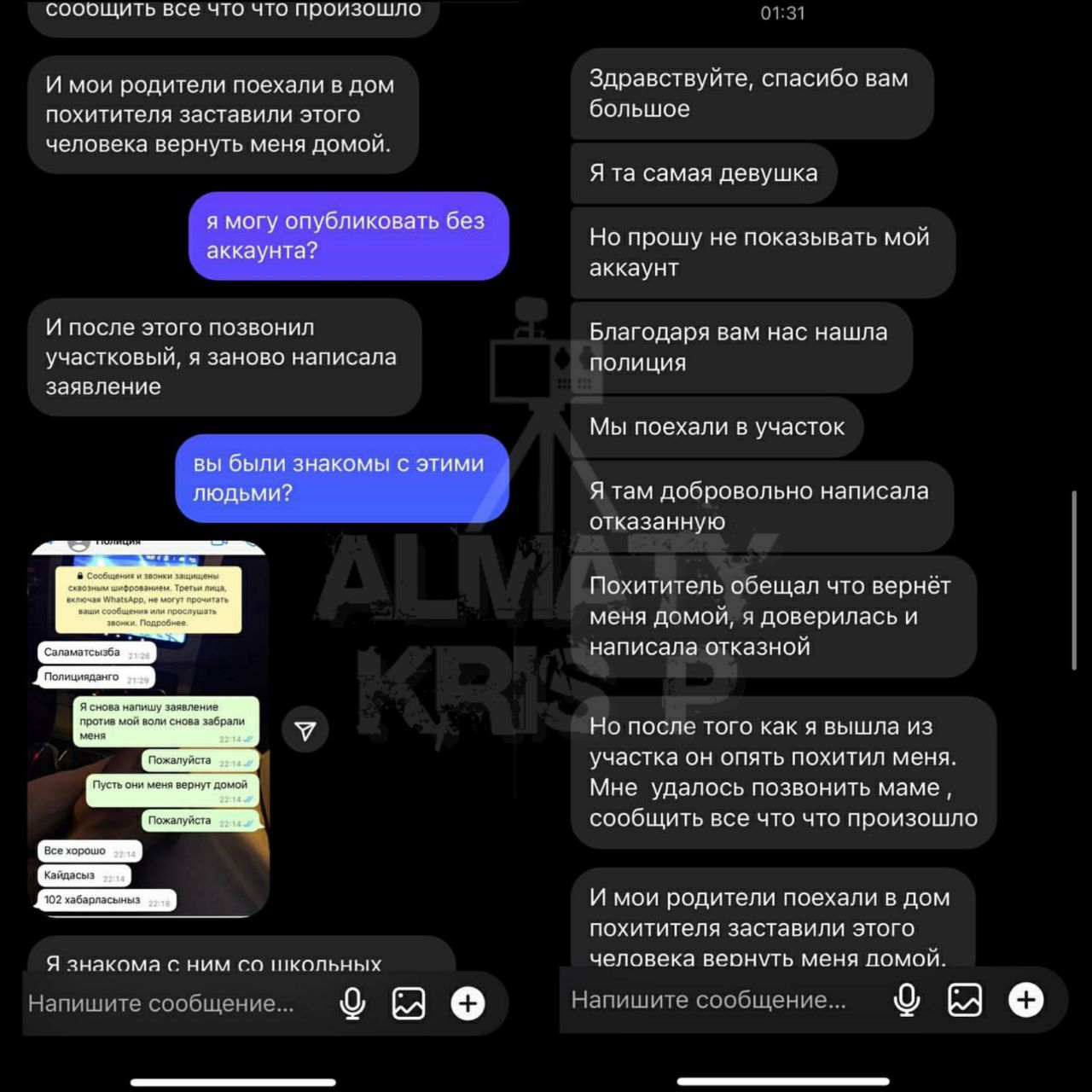 А после в социальных сетях появилась переписка с предполагаемой похищенной, где девушка утверждала, что её попросили забрать заявление, обещая вернуть после этого домой, а после повторно похитили: