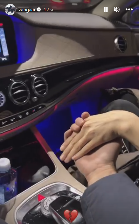 Зангар решил заинтриговать подписчиков, показав, как едет по ночному городу с женщиной, которую нежно берет за руку. При этом на сториз было эмодзи с разбитым сердцем.