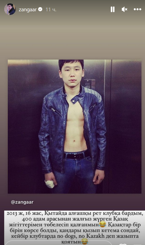 "2013 год, мне 16 лет. В Китае впервые пошел в клуб и подрался с единствеными казахскими джигитами среди 400 человек. Если казахи увидят друг друга, все, кровь у них вскипает, — написал Зангар Нуртас в Instagram.