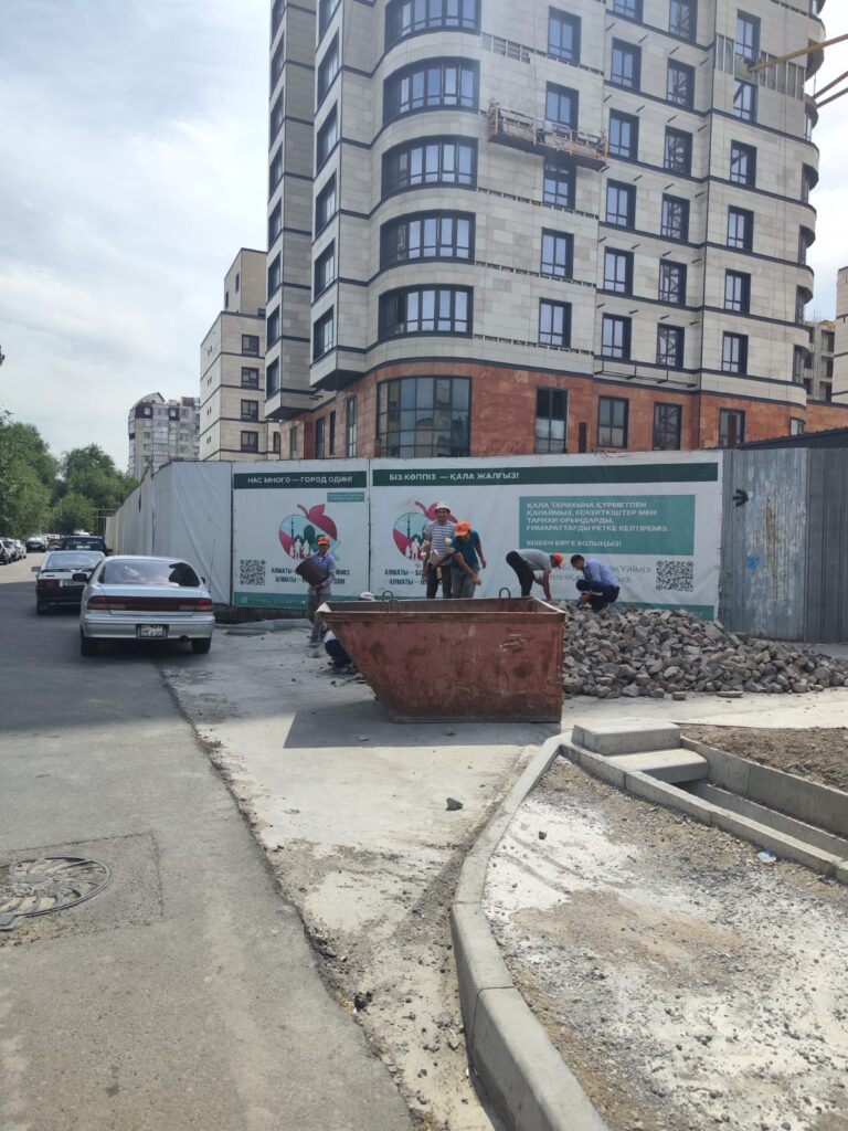 Следует отметить, что в последнее время строительные компании часто захватывают общественные городские территории. Один из свежих примеров — улица Катаева, где застройщик ТОО «Век Тұмар» частично перекрыл проезжую часть, фактически сузив движение до одной полосы.