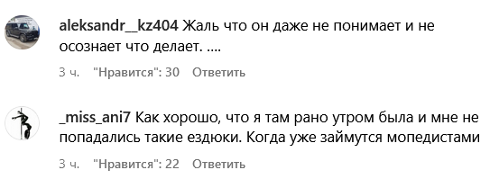 Зрелище возмутило алматинцев, как водителей, так и пешеходов. Многие потребовали принять меры, например, штрафовать и заставлять получать номера, по которым можно было бы идентифицировать нарушителей.
