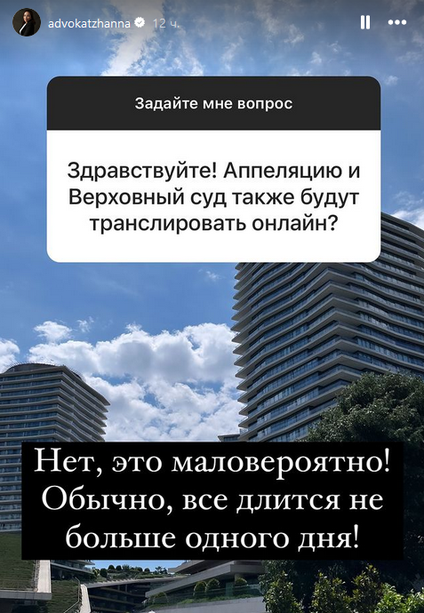 Жанну Уразбахову спросили, будет ли транслироваться рассмотрение апелляции в Верховном суде.