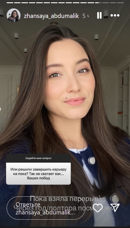 «Не завершала карьеру. Пока взяла перерыв. Через год-полтора посмотрим», — ответила Абдумалик.