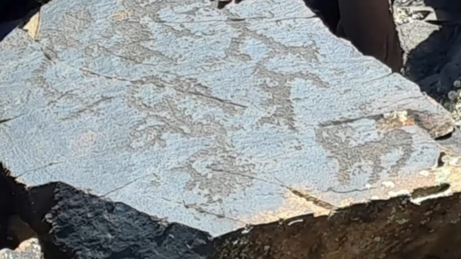 На крутых склонах можно увидеть пещеры. Это не что иное, как медвежьи берлоги. Поэтому провожатые обязательно берут с собой ружьё. Повсюду обнаженные скалы серо-желтого цвета, которые покрыты коркой темно-вишневого цвета. Такие камни служили полотнами древним художникам. На них едва заметные бурые пятна, и, если к ним внимательно приглядеться, можно с легкостью распознать горных козлов и лошадей. В Казахстане подобные памятники не редкость. Но есть в этой галерее первобытной живописи совсем неординарный экспонат.