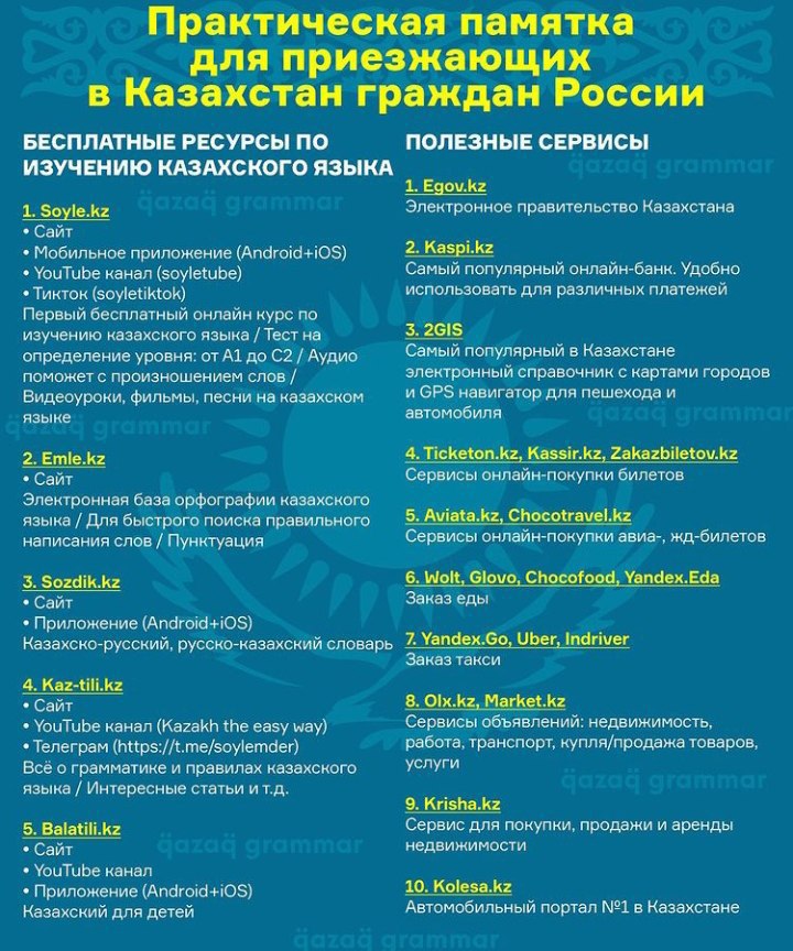 К слову, казахстанские энтузиасты продолжают публиковать полезные памятки для россиян, приезжающих в нашу страну.