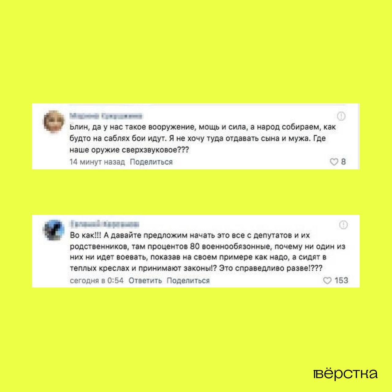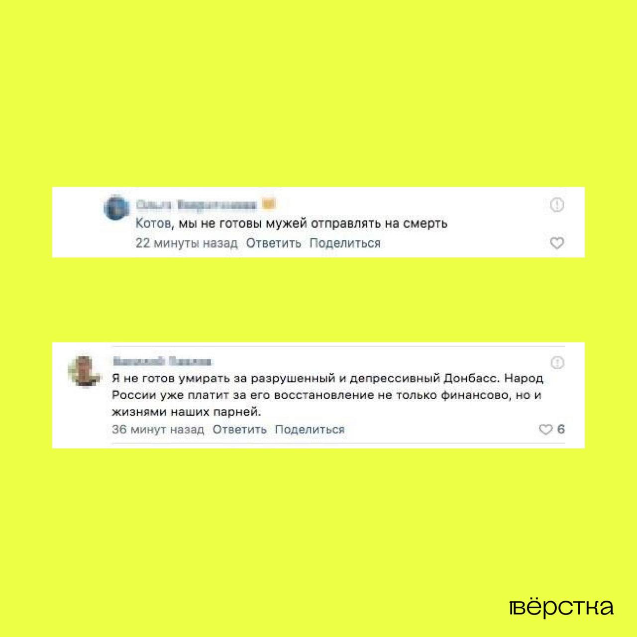 "Женщины открыто пишут, что не хотят отправлять на смерть мужей и сыновей. Мужчины, прошедшие службу в армии, замечают, что за время службы их научили только мыть пол и маршировать" — общий лейтмотив сообщений.