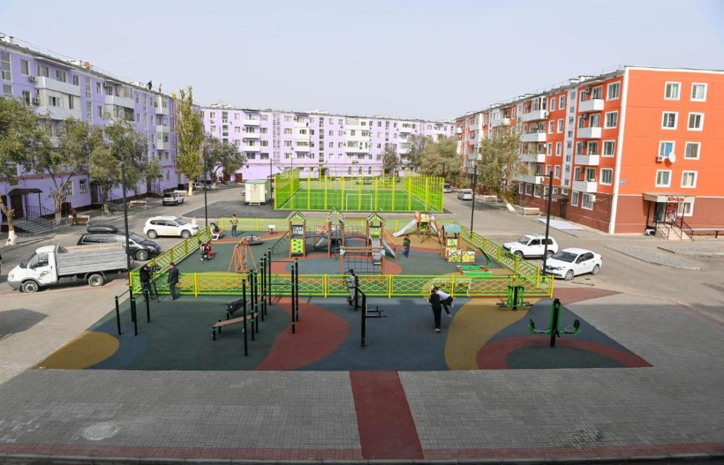 Такая же акция продолжилась и на проспекте Абая, у дома № 47, фасад которого был обновлен в прошлом году. Во дворе жилого дома компания «Қыран» провела работы по благоустройству детской площадки.