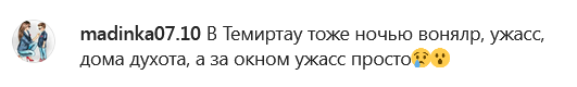 "Весь город покрылся пеленой густого, едкого дыма… Все соседи выбежали на балконы проверить, что случилось… Я вызвала пожарную службу, потому что вся квартира уже была в дыму…", "Майкудук, 1.20 ночи, дышать нечем — смог, вонь стоит, глаза режет. Пока все спят, завод выбросы делает?" — написали они.