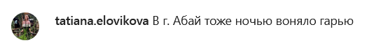 "Этой ночью Караганда чуть не задохнулась от едкой вони. Дым с резким запахом жженой резины проникал в жилые дома, и казалось, что горит если не у тебя в квартире, то точно у соседей", — описал ситуацию местный блогер Сергей Терещенко.