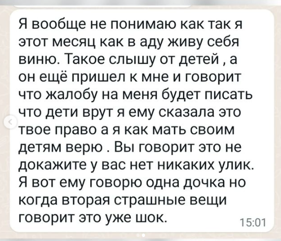 "Все подробности происходящего мама услышала впервые на допросах у дочерей, это стало настоящим шоком для неё. На момент совершения преступления старшему ребенку было восемь лет, училась во втором классе, потом он резко прекратил, а когда младшей исполнилось семь, перешел на нее. 8 января 2023 года мать подала заявление по факту развратных действий со стороны отчима, но он до сих пор на свободе, смеется в глаза и уверен, что ничего не докажут", — написали в посте.