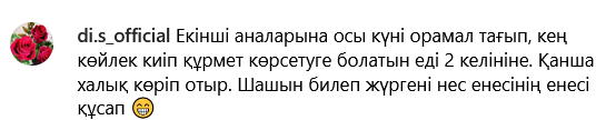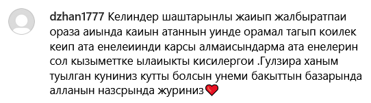 Однако в большом количестве теплых поздравлений и пожеланий от комментаторов было и немало критики, причем основная ее часть была направлена в сторону невесток Гульзиры Айдарбековой. Жулдыз Абдукаримову критиковали чаще, чем Айгерим Саркенову.