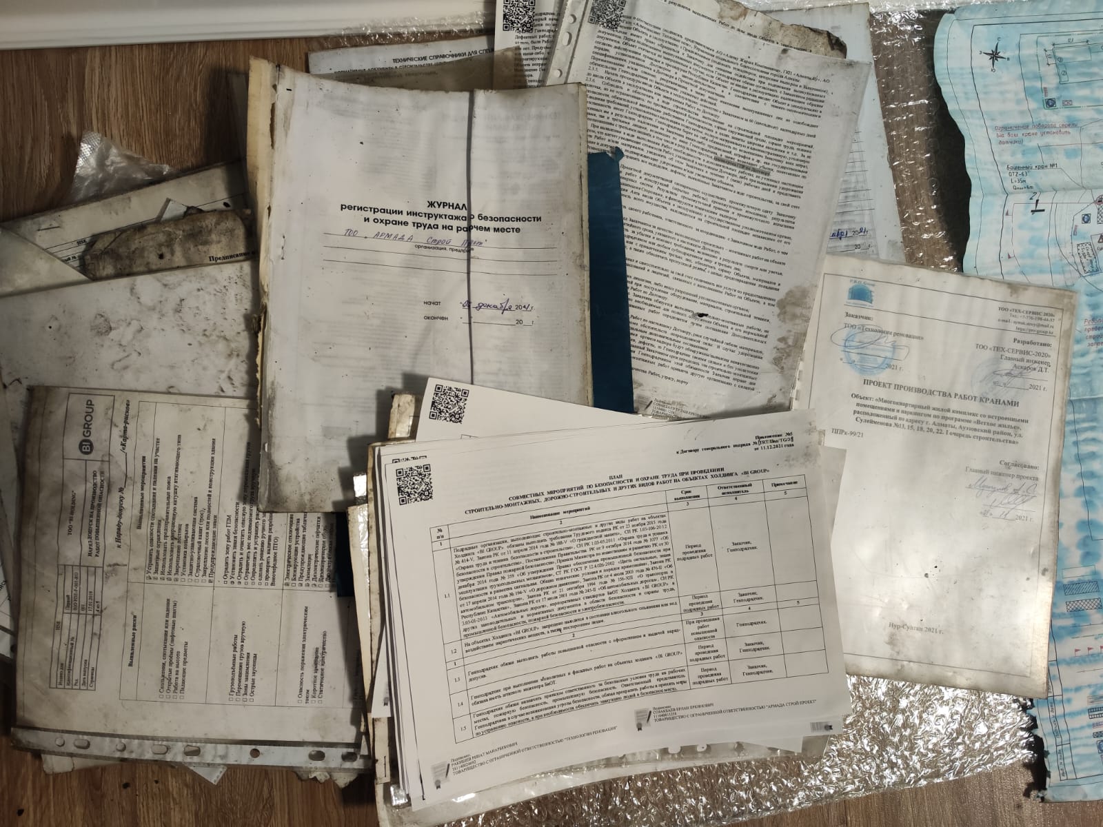 Заглянула в окно, в нос ударил резкий запах гари, сквозь решетку были видны почерневшие стены. Скорее всего, раньше здесь была кухня, которая сгорела дотла. На подоконнике у самой решетки лежала стопка промокших бумаг, засыпанная кусками обугленной штукатурки. Протянула руку, достала уцелевшие документы 2021-2022 годов, на которых красовался логотип BI Group. Примечательно, что застройщиком жилого комплекса через дорогу тоже является эта компания.