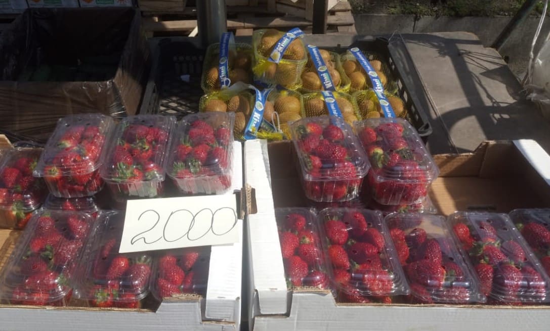 Появилась крупная клубника, со слов продавцов, «ташкентская», по 2000 тенге за небольшой контейнер.