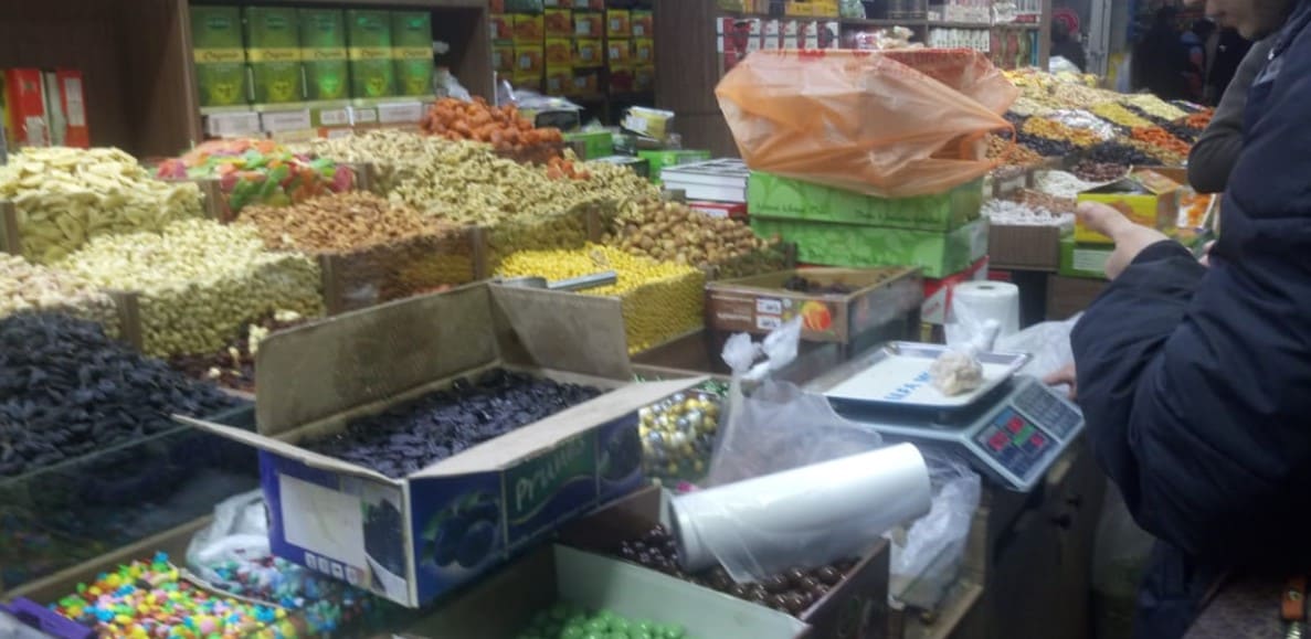В отделах с сухофруктами люди покупали традиционные курагу, изюм, орехи, засахаренные фрукты, набат, финики, инжир.