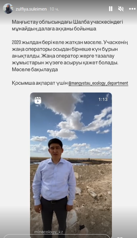 "По утечке нефти в степь на участке "Шалба" в Мангистауской области.