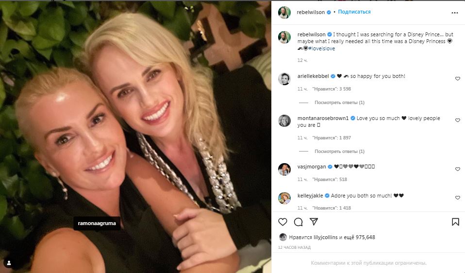 — Я думала, что ищу диснеевского принца, но, может быть, на самом деле все это время мне нужна была диснеевская принцесса, — написала Уилсон.
