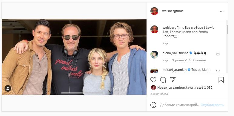 Марюс Вайсберг опубликовал в своем Instagram снимок со съемочной площадки фильма, пишет Cosmo.kz