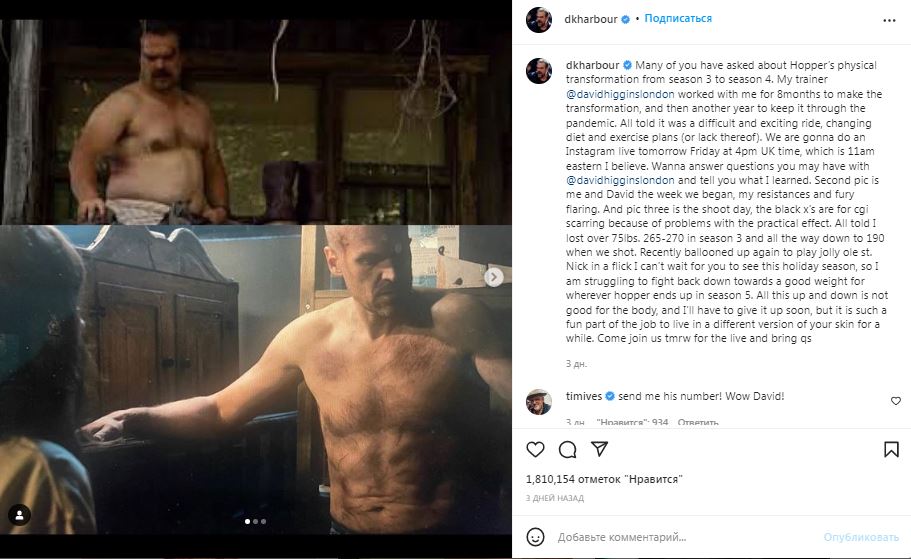 — В третьем сезоне я весил около 120 килограммов, а к съемкам четвертого сбросил до 86-ти , — написал артист.
