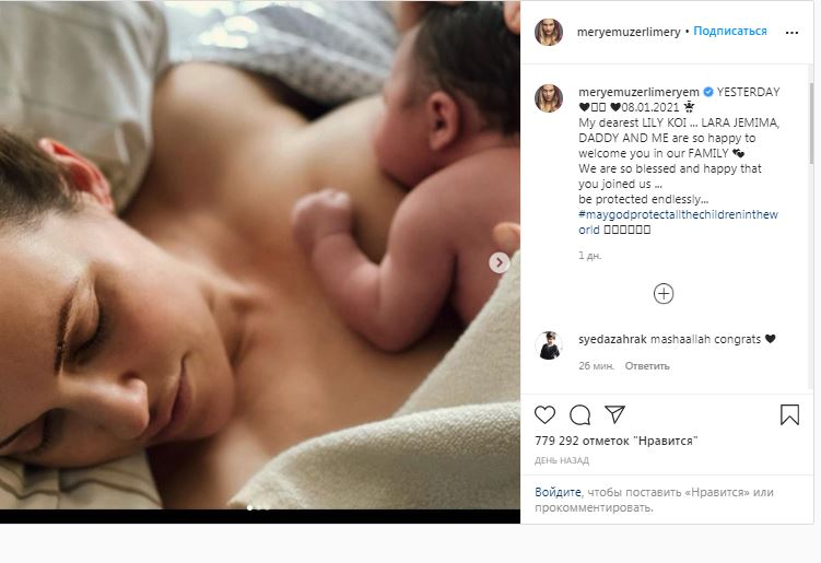 «Моя дорогая Лили Кои! Лара (6-летняя дочь Мерьем, — Прим. ред.), папа и я так рады приветствовать тебя в нашей семье. Мы так счастливы, что ты присоединилась к нам!»