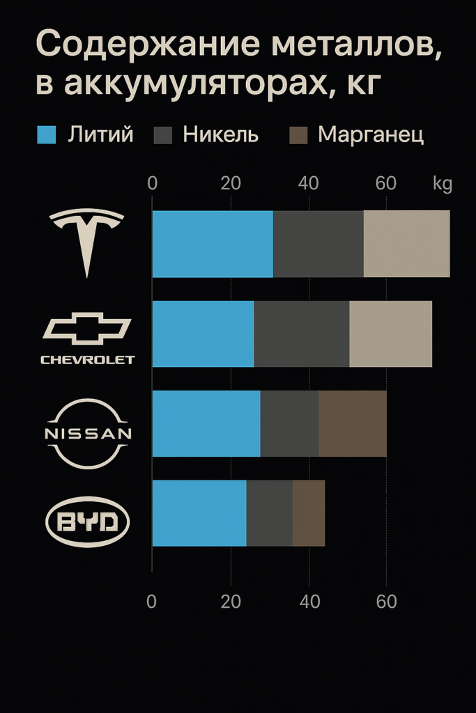 Аккумуляторы в таких машинах — это целая химическая лаборатория. Внутри них парад элементов таблицы Менделеева, где каждый металл играет строго отведённую роль. Возьмем, к примеру, популярный состав NMC — это никель, марганец и кобальт. Такой смесью питаются Tesla, Chevrolet и Nissan.