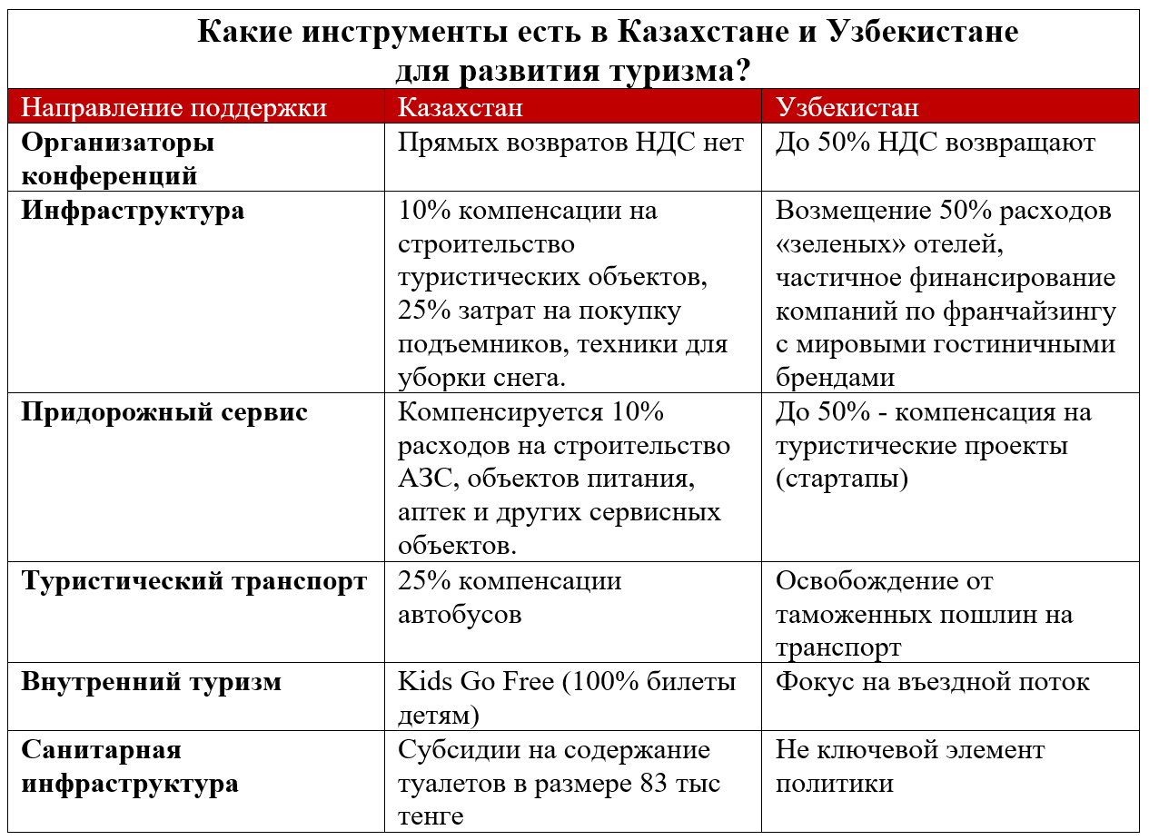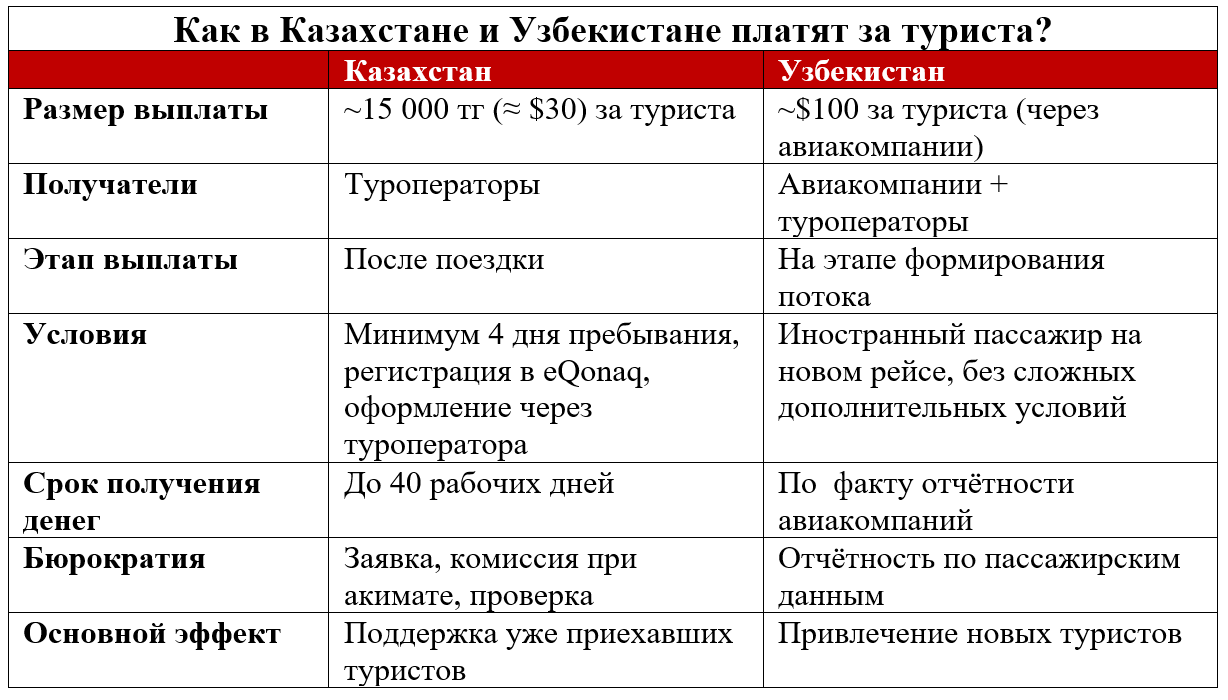 В Казахстане тоже активно развивают туризм. У нас есть субсидии, есть поддержка, есть целый набор различных мер и инструментов. Мы тоже платим за иностранного туриста, вкладываемся в инфраструктуру, компенсируем бизнесу часть затрат. Но есть нюансы.