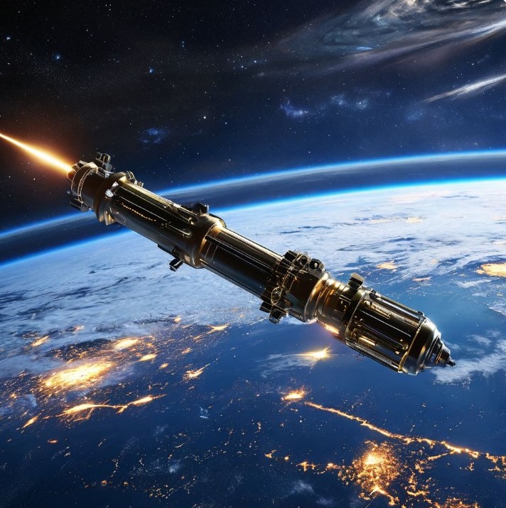 В 1974 году на орбиту была выведена пушка Р-23М. Хотя точнее ее будет назвать большим пулеметом. Разработки космической пушки шли семь лет. За основу был взят новейший пулемет «Картечь», созданный для истребителей последнего поколения. Снаряды для космической пушки весили 250 граммов и могли с максимальной точностью поражать цель на расстоянии 4 км. Скорострельность составляла 5000 выстрелов в минуту. Этого хватало, чтобы разнести в клочья целую орбитальную станцию, а для того, чтобы вывести из строя вражеский спутник, хватало и одного удачного выстрела. Планировалось запустить на орбиту 5 станций с этим грозным оружием. Испытания Р-23М прошли относительно успешно. Пушка стреляла и не давала осечек. Но для практического применения она не годилась. Дело в том, что у мощного оружия была сильная отдача. Космическую станцию относило в строну после первого же выстрела. Требовалась невероятно слаженная работа стрелка и команды станции, которая выравнивала бы траекторию полета. Представим, что кто-то пытается стрелять из базуки, прыгая на батуте, причем на ногах у него роликовые коньки, а с десяток человек держат этот батут на весу, да еще и перемещаются по полигону, а цель находится в четырех километрах и не больше среднего грузовика. Понятно, что для реальных боевых действий такие цирковые фокусы не годятся. Орбитальную пушку не раз пытались модифицировать, а потом появление управляемых и самонаводящихся ракет убило саму идею в принципе.