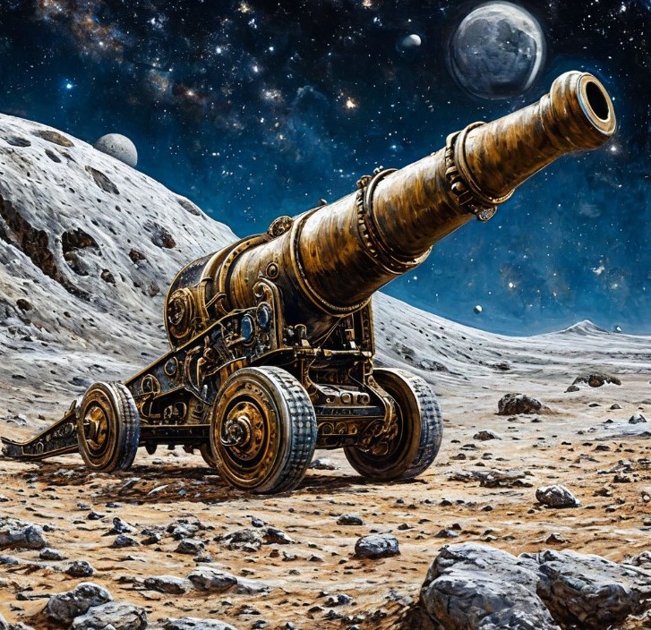 Среди действительно перспективных проектов по превращению космоса в военный полигон встречались и откровенно безумные. Самый первый, к счастью, не попал даже на бумагу. В 1957 году, всего через месяц, как прошел успешный запуск спутника, Никита Хрущев, воодушевленный успехом в космической гонке, заявил, что пора строить города на Луне. А какой советский город может быть без воинской части? Значит, надо на Луне поставить большую пушку, из которой можно пальнуть по капиталистам, показав им кузькину мать, а еще хорошо бы понаставить на спутнике Земли мощных телескопов, чтобы смотреть, чего там буржуи удумали. Впрочем, по речам Никиты Сергеевича трудно судить, шутит он или говорит серьезно. Но теоретически идея военной лунной базы в период холодной войны казалась перспективной не только в СССР.