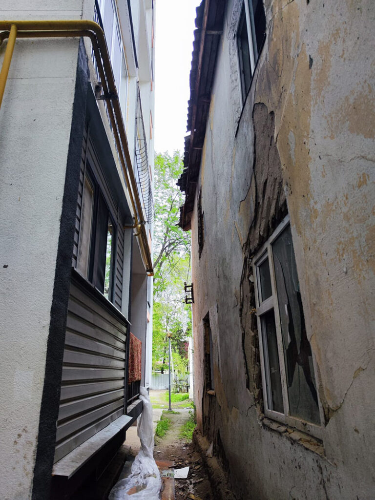 А как вообще так строили? Как принимали объект? По строительным нормам, расстояние между зданиями обычно должно составлять не менее 6–8 метров. По всей видимости, основная проверка прошла до и во время строительства. Сам проект, скорее всего, прошёл согласование с оговоркой — территория будет очищена позже. Но «позже» не наступило. Дом стоит. Люди заселились. Заброшка осталась. Ответственных нет.