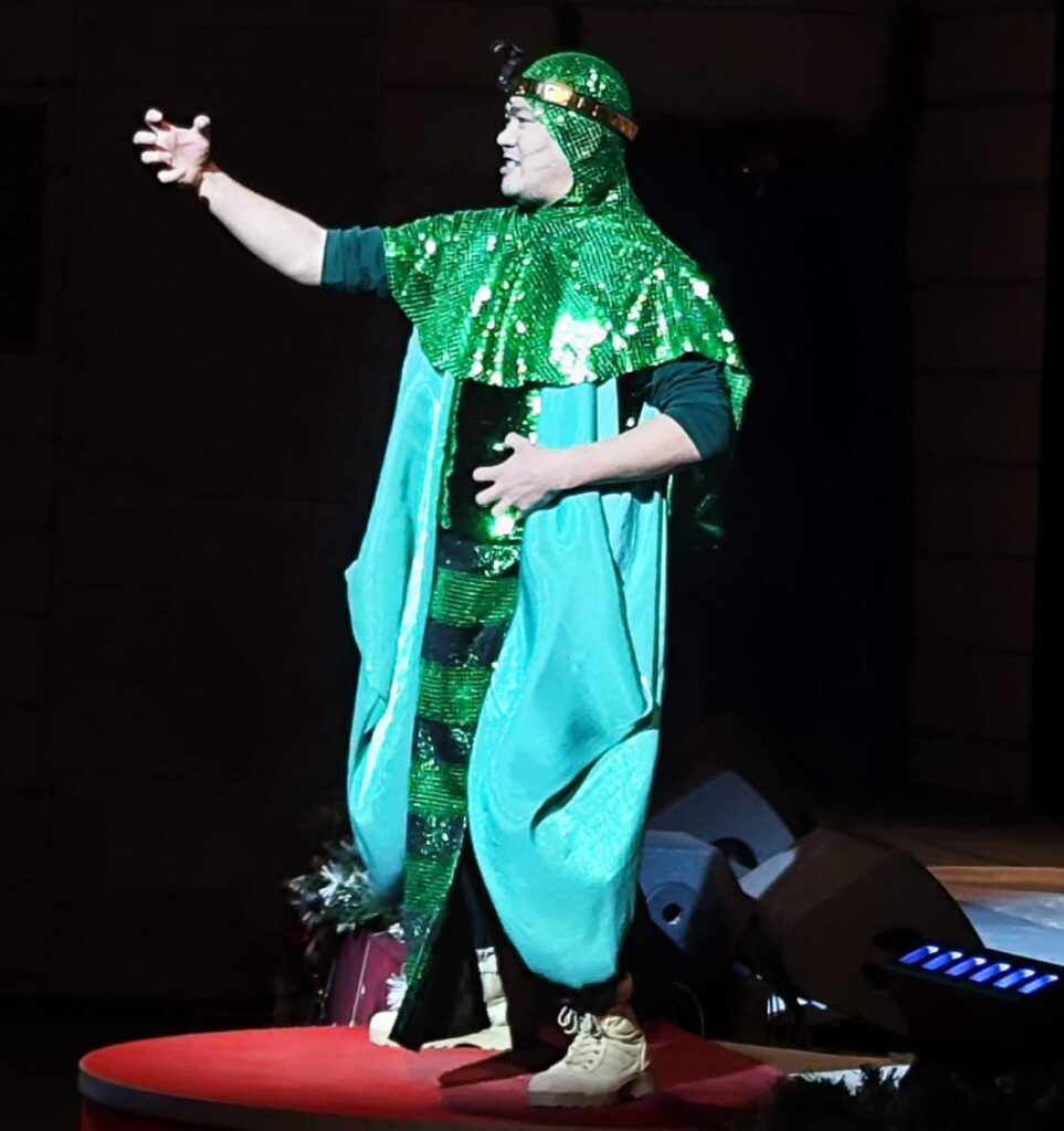 Но история на этом не заканчивается. Искусственный интеллект, словно современный злодей, захватывает героев в свои сети, и тут на сцену выходят настоящие Дед Мороз и Снегурочка. Они не только спасают друзей, но и устраивают настоящий праздник для зрителей. Символ года — Зеленый Змей — учит детей искусству китайского единоборства, а финальный флешмоб у елки дарит ощущение настоящего чуда.