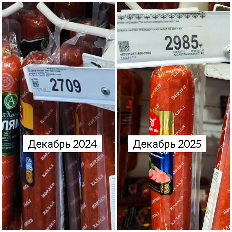 Цены на жая и казы в одном из алматинских магазинов на 10 декабря 2025 года